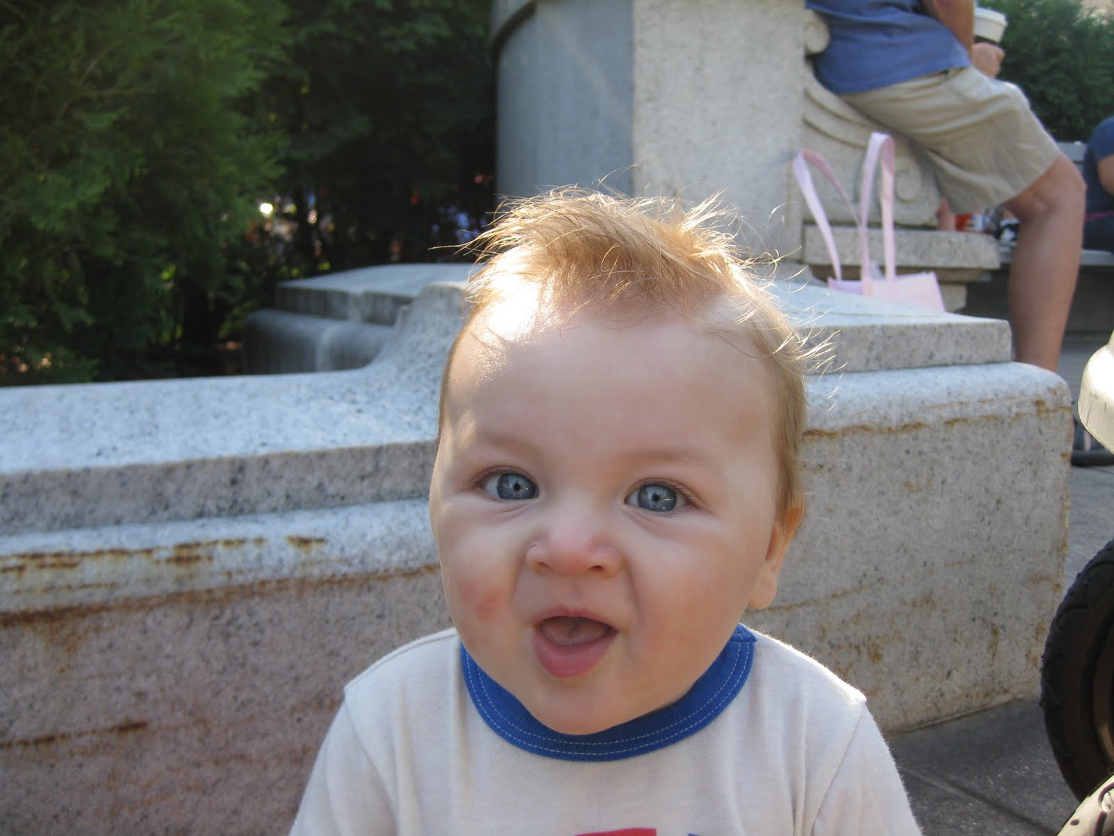 I HAVE VERY FOND MEMORIES OF 4TH OF JULY BBQs SPENT IN THE BACKYARDS OF AUNT'S AND UNCLE'S HOMES IN MILWAUKEE. I SPECIFICALLY REMEMBER MY UNCLE TAKING US UP ONE AT A TIME TO VIEW FIREWORKS ATOP THEIR FLAT-ROOFED HOME. SINCE LIVING IN MADISON, I BELIEVE JEFF HAS TAKEN CALL MOST 4TH OF JULY WEEKENDS. I HAVE SEEN ONLY A FEW FIREWORK DISPLAYS FROM AFAR. HOWEVER, THIS YEAR JEFF WAS ABLE TO SPLIT HIS WEEKEND OF CALL AND WE WERE ABLE TO JOIN FAMILY IN MILWAUKEE FOR A 4TH OF JULY BBQ. I WAS SO HAPPY TO INTRODUCE JOEY TO EXTENDED FAMILY, AND FOR CHARLOTTE TO SPEND TIME WITH ALL THE AUNTIES! MANY PRECIOUS MEMORIES WERE MADE INCLUDING, CHARLOTTE'S FIRST WATER GUN FIGHT, LEARNING ALL OF THE AUNTIE'S NAMES, LISTENING TO THE AUNTS SING PATRIOTIC TUNES, TAKING WALKS WITH AUNT BARB, PLAYING IN AUNT KATHY'S ARMS, AND DODGING WATER WITH AUNT BILLIE. JOEY RECEIVED LOTS OF ATTENTION, KISSES AND AFFECTION FROM HIS GREAT AUNTS. JEFF AND I ENJOYED GOOD FOOD, FELLOWSHIP, AND THE PLEASURE OF WATCHING OUR SWEET KIDS INTERACT WITH FAMILY. NANY AND HER SISTERS TREATED US TO A FEW HOURS ALONE, SO WE COULD PLAY GOLF, WHICH WE ALWAYS APPRECIATE AND ENJOY.